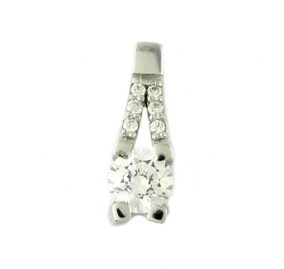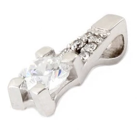 Oslňující přívěsek abstraktního tvaru je vyroben z bílého zlata. Kombinace jednoho velkého zirkonu průměru 5 mm a šesti drobných zirkonů průměru 1,3 mm působí velmi luxusně. Celková délka přívěsku je 15 mm a šířka 5 mm. Přívěsek plynule přechází v provlékací očko, které má vnitřní rozměr 3 x 2 mm. Sbalit popis