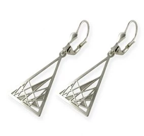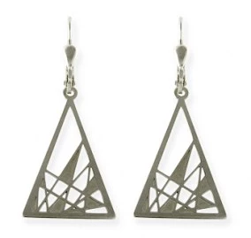 Náušnice pro dámy jsou vyrobeny z bílého zlata. Základní obrys tvaru trojúhelníku je zdoben různě kříženými přímými liniemi. Některé ze vzniklých ploch jsou plné a lehounce matované. Ostatní plochy náušnic jsou lesklé a hladké. Výška náušnic bez zapínání je 23 mm, v nejširším místě má šperk 19 mm. Zapínání náušnic je řešeno na běžný dámský patent. Sbalit popis