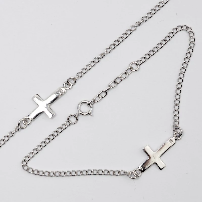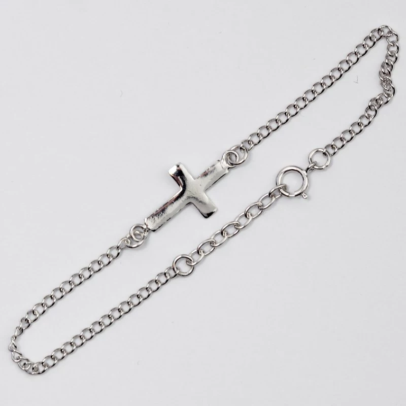 Stříbrný náramek s motivem křížku. Délka náramku je 18 cm. Rozměry středového motivu jsou 17 x 10 mm. Sbalit popis