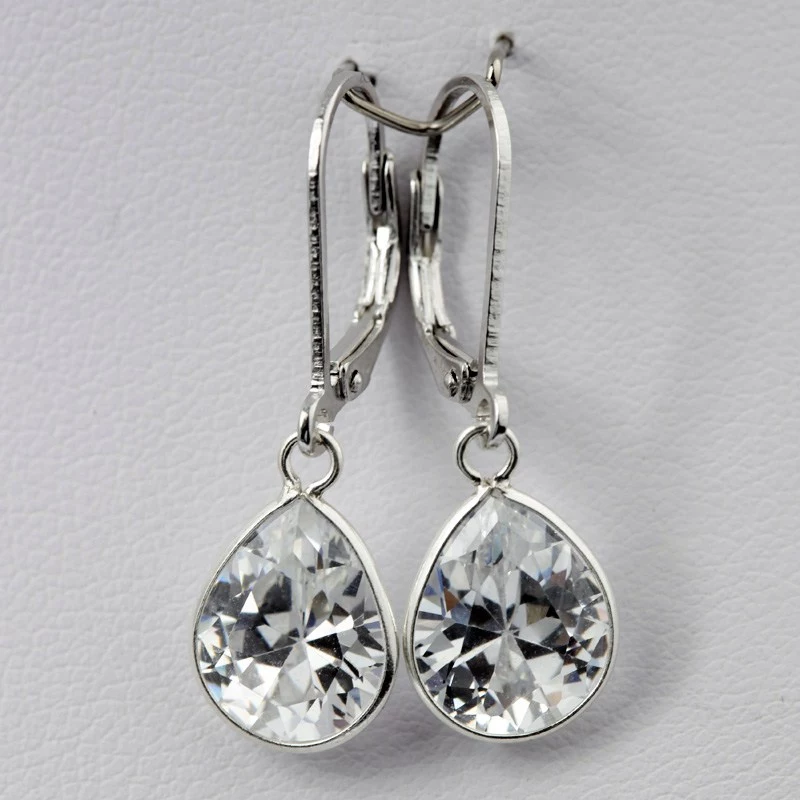 Stříbrné náušnice s motivem kapičky, bílý zirkon. Rozměry náušnic jsou 10 x 30 mm. Sbalit popis